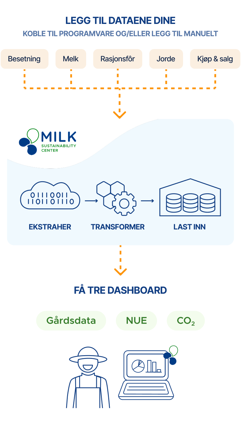 Utforsk Milk Sustainability Platform i dag – din enkle måte å spore, måle og forbedre bærekraften på gården på i ett kraftig dashbord. Registrer deg nå for å starte din bærekraftsreise.